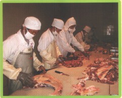 公司直屬優(yōu)質肉牛育肥場,位于平度市田莊鎮(zhèn)宮東村南1公里處,始建于2009年3月,設計存欄3000頭,現存欄1000余頭,占地100多畝,現有建筑面,18600平方米。公司擁有一批具有養(yǎng)牛經驗的管理、技術、飼養(yǎng)人員。聘請了全國養(yǎng)牛方面的知名專家作為技術顧問。養(yǎng)牛場現有職工23人,具有初、中級以上技術等級和從事養(yǎng)牛5年以上的工人占70%以上,有管理和技術人員5人,其中畜牧獸醫(yī)專業(yè)中、高級以上職稱3人。本公司通過食品安全認證、質量體系、無公害認證,是國家地理標志保護產品。是肉牛定點屠宰單位。被評為“島城市民最喜愛的農產品品牌”、第一批“平度好食材”。本公司肉牛養(yǎng)殖場喂牛所用飼料全部采用自己配制的飼料,主要使用大豆、玉米、麩皮,大豆經炒料機炒熟后再分碎飼喂,無任何添加劑。公司有火鍋料理店6處,安排從業(yè)人員80多人。公司擁有年屠宰加工1萬頭肉牛的屠宰生產線,嚴格執(zhí)行國家GB/T17238-2008鮮凍牛肉分割標準,并按伊斯蘭清真屠宰要求進行屠宰分割以及排酸嫩化處理。我公司生產的牛柳、西冷、肉眼、上腦、S腹肉等產品主要銷往上海,北京,南京,濟南,青島,煙臺等大中城市的四、五星級酒店,用作西餐、韓餐、日餐、中餐等深受用戶青睞。